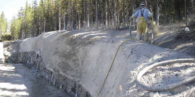 A slope is common when terrain is changed to accommodate new roads and other construction-type projects like dams or railway lines. Sometimes the slopes are able to self-support, while other times some type of structural support is absolutely necessary to prevent the slope from collapse. Shotcrete is a terrific product to both retain the slope…